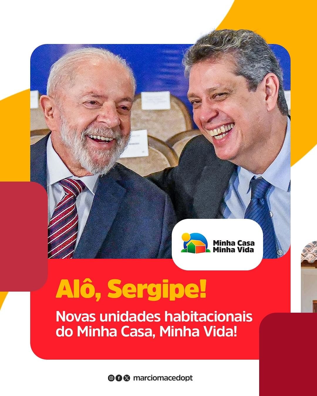 “Alô, Sergipe! Mais uma notícia boa. O presidente Lula autorizou a contratação de mais casas populares para nossa gente. Por meio do programa Minha Casa, Minha Vida, liderado pelo Ministério das Cidades, serão destinadas ao nosso estado 674 unidades habitacionais distribuídas em 20 municípios”, afirmou Márcio Macedo em vídeo publicado no Instagram.